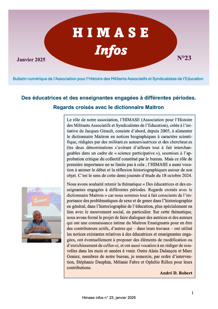 L’HIMASE alimente le dictionnaire Maitron en notices biographiques concernant des militants associatifs et syndicalistes de l’éducation et anime le débat et la réflexion historiographie autour de cet objet