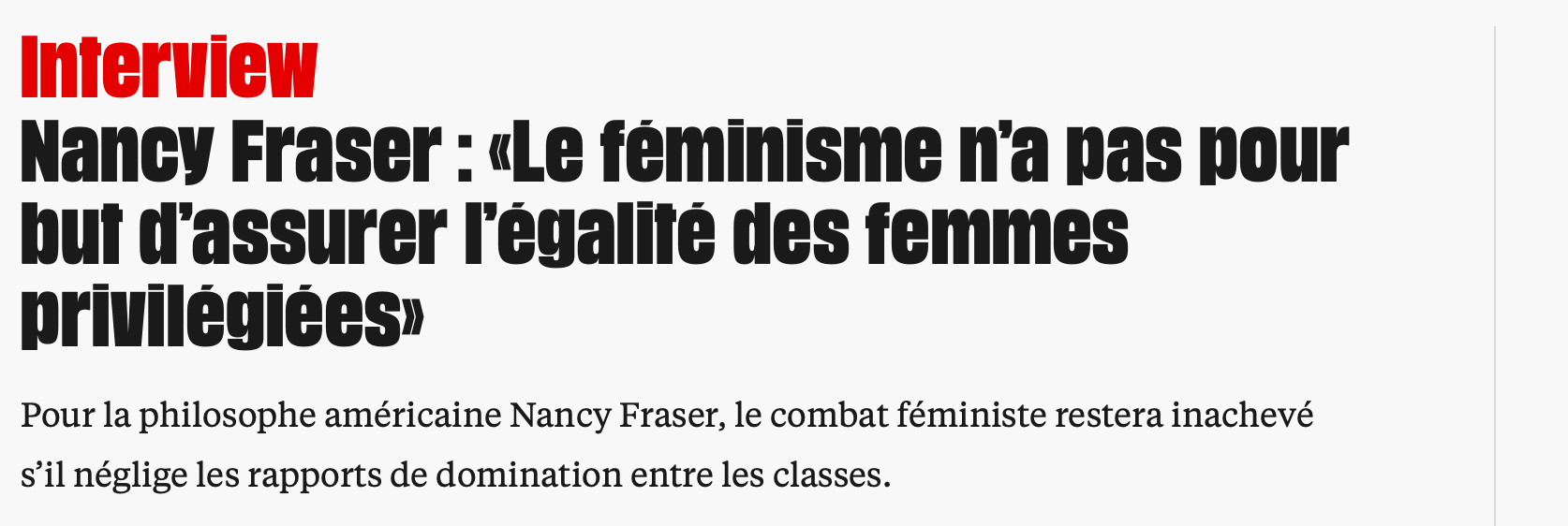 Pour la philosophe américaine Nancy Fraser, le combat féministe restera inachevé s’il néglige les rapports de domination entre les classes.